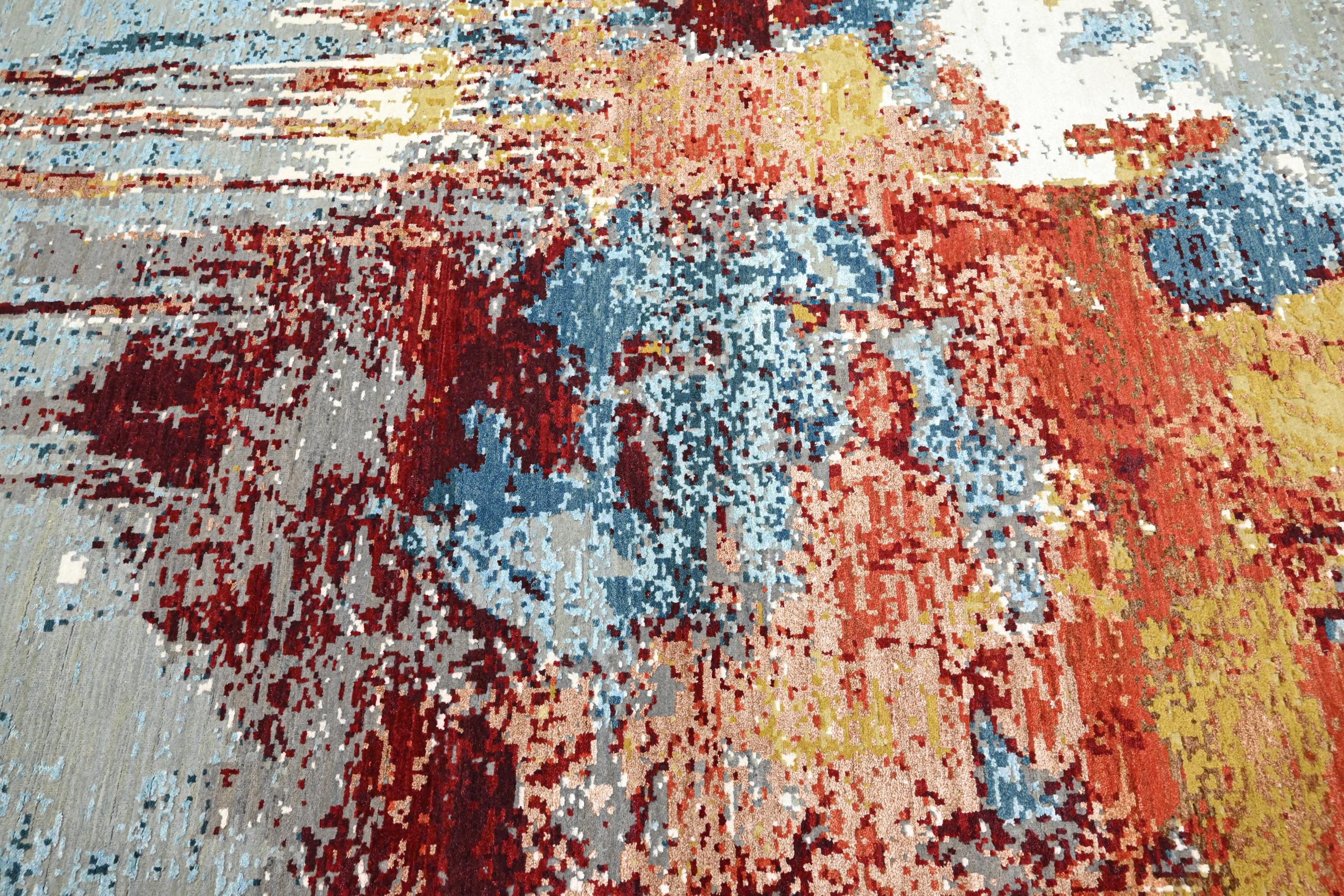 Aurora Burst is a statement piece that blends art and luxury into one striking carpet. The design features an abstract fusion of rust red, sapphire blue, golden ochre and soft grey tones, creating the look of a painted canvas brought to life through fine weaving. Its textured surface and layered colour transitions make it perfect for contemporary, artistic and high-end interiors. Ideal for living rooms, lounges, suites or gallery-style spaces, this carpet adds depth, emotion and visual interest to any setting. Crafted for durability and elegance, Aurora Burst is more than a floor covering — it’s a centrepiece.